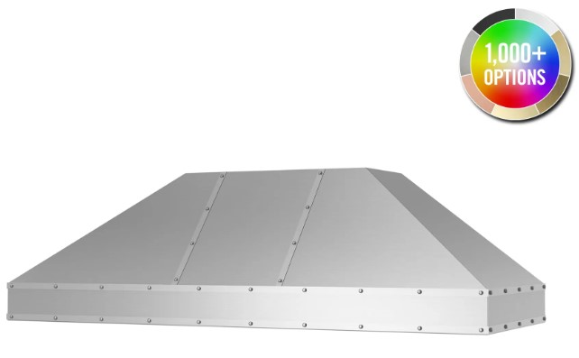 Metals & Strapping: Change your hood material from stainless steel to 14 different custom metals options including brass and copper. Plus, enhance your ventilation hood design by adding custom strapping and rivets to compliment other finishes in your kitchen.